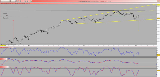 Nos sigue valiendo el análisis del fin de semana del futuro, la linea en horario no ha sido perforada y en intra el expansivo está activado pero con el rsi que sigue dando las mismas divergencias.