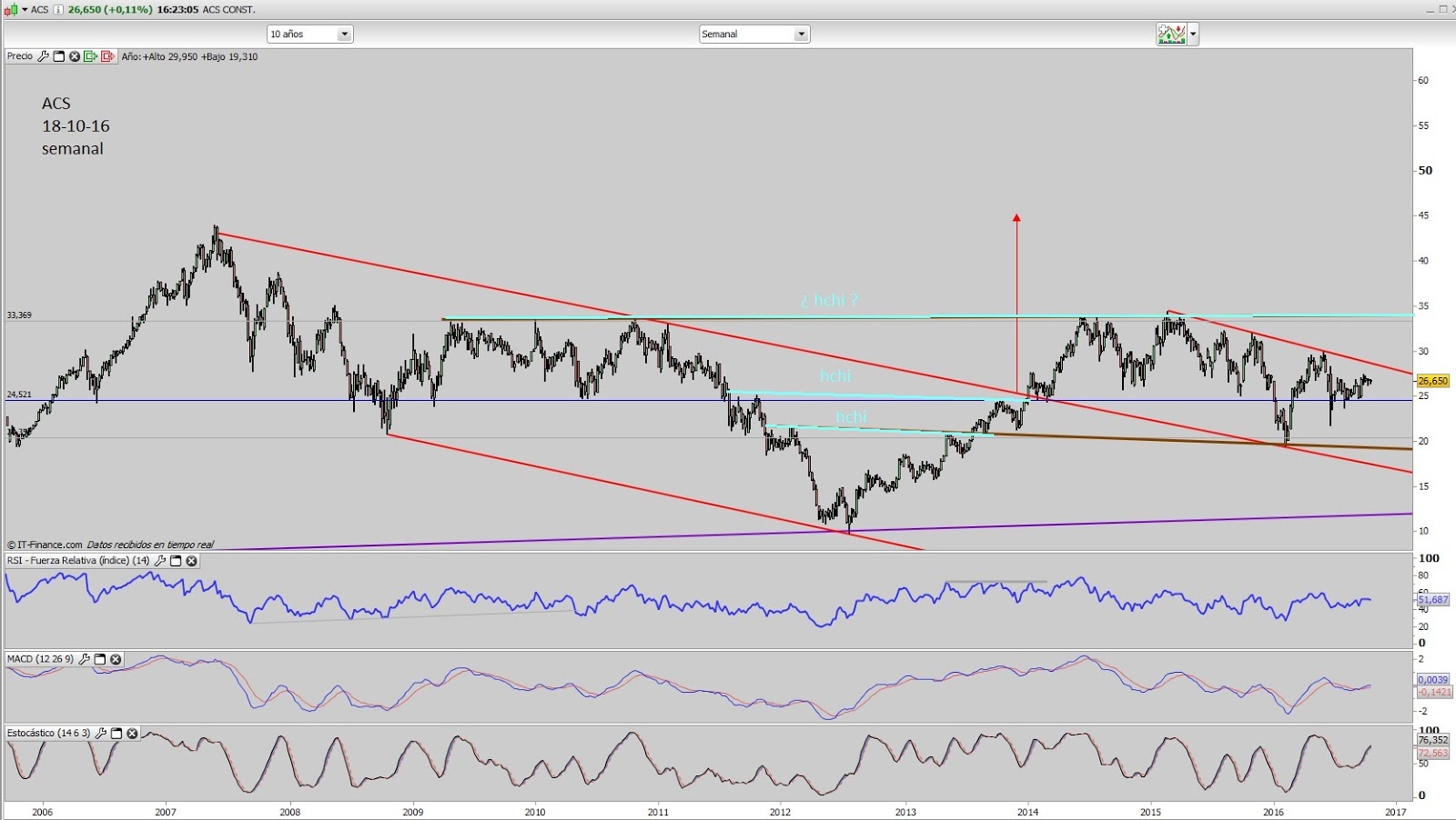 Meto estos dos de ACS porque al hacer el gráfico de Orange me ha venido a la mente su gráfico de hace un par de años, es el último,este primero es de ACS actualizado, fijaros la similitud.