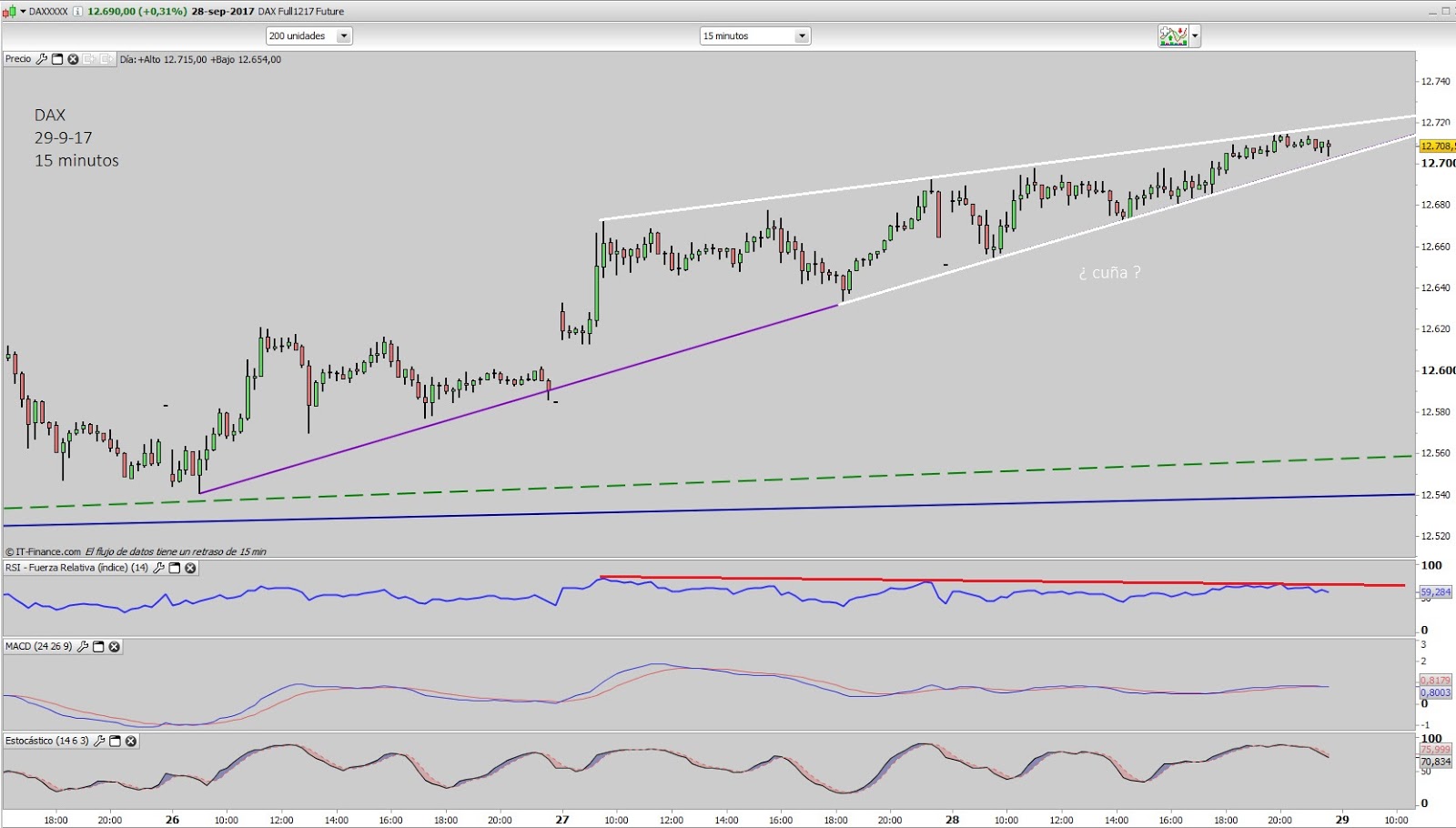 Casi 1.500 contratos en 15 minutos, mucho volumen, toca marcar los mínimos y si hay suerte veremos loq eu pinto en el gráfico horario.