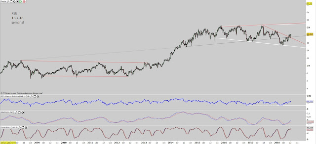 Sin dividendos,cambiamos el expansivo por un triángulo y en este se ve como el rsi va rompiendo ligeramente su bajista.