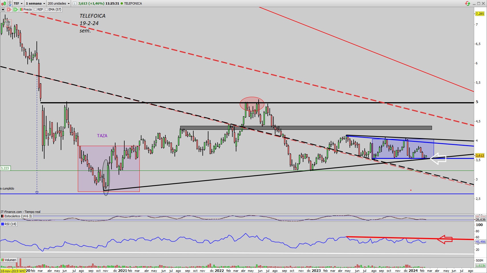 .... En la misma zona donde va dando entrada desde hace unos meses y es que por rentabilidad riesgo es lo que pide, eso si, nos ayudaría que el rsi supere su bajista.